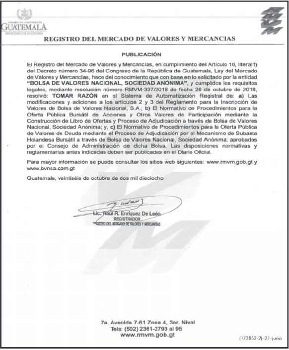 Banco Industrial, S.A. Toma De Razón Bonos Bancarios BI IV (Expresados En Quetzales)