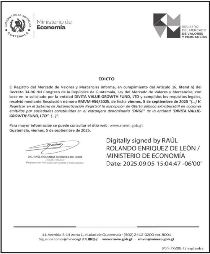 12/09/2025 DIVITA VALUE-GROWTH FUND, LTD. INSCRIPCIÓN OFERTA PÚBLICA Ver Imagen